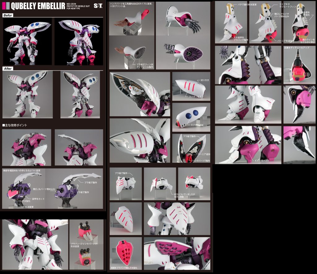 前腕とファンネルコンテナをキュベレイの物にもどし、ハンドパーツを3Dプリントパーツ(三角屋【Noble】Aタイプ)に変更しています。金属箔のデカールを貼るのが難しかったです。