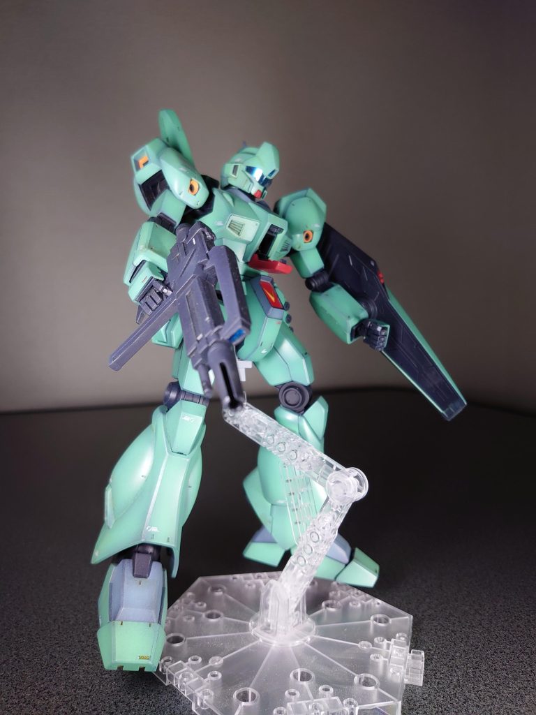 ジェガンは他のMSとは違い装備を減らす事で機動性を上げるストイックな感じがとても気にいってます。本体色のグリーンはかなり悩みました。グラデーションもキツめにかけています。