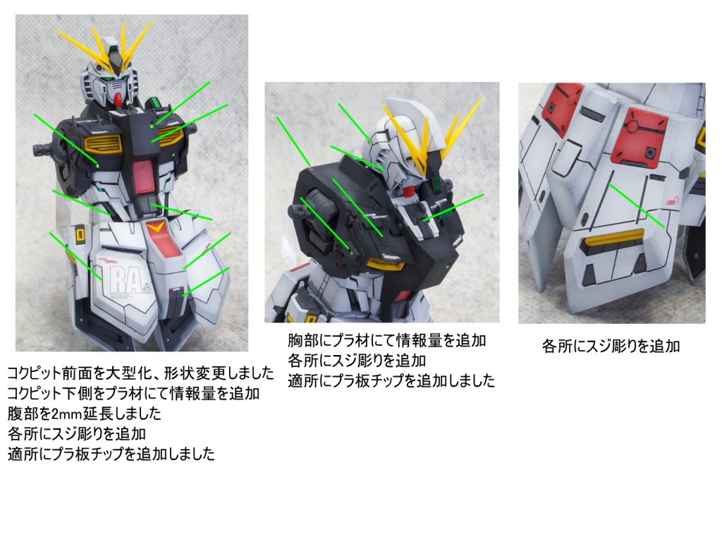guplafact… MG 2023.04/22更新 MG νガンダム ver.ka 7240 180 いいねしたモデラー(180) 2 5 作品を共有 何回も作っていますが少しづつ進化させれたらと思って毎回 製作しています。 腹部を2ミリ延長してコックピツト下にプラ材を使用して情報量を 追加しました。コックピットの上側をプラ材にて形状変更 肩にプラ材にてメカを追加。胸回りにプラ材にて形状を変更しました。フロントアーマーの形状変更してスジボリにて情報量を 追加しました。各所にプラチップを埋め込みました。 各所、足りないと思った箇所にスジボリにて情報量を追加しました。 塗装は、グラデーション塗装にて仕上げました。 逆襲のシャア MG ver.ka 改造 プロポーション変更 スジボリ グラデーション塗装 何回も作っていますが少しづつ進化させれたらと思っています。 コメント コメントをして応援しよう コメントにはログインが必要です 3年前 作り甲斐がありそうですね。 少しずつ進化させられているようで、素晴らしいと思います。 guplafactory 3年前 ありがとうございます。 guplafactory 主にMGやRGやHGUCを製作しています。 自分なりに改造をしたりしています。 9 HG 高機動型ザクⅡ シーマ ガラハウ専用機 胸部、スカート周りを形状変更をしてスジボリを追加して 雰囲気… 8 HG 高機動型ザクⅡ ユーマライトニング機 色を変更してユーマライトニング機にしました。 スジボリの彫り… 9 HG 高機動型ザク ランバル機 スジボリ追加にて情報量を追加してカラーリングを 変更してラン… 9 HGUC グフ リバイブ 各所にスジボリにて情報量を追加して塗分け 太ももをパテにて幅… guplafact…さんのページ この作品をお薦め作品に設定する Please login to update your profile! Please login to update your profile! Please login to update your profile! Please login to update your profile!