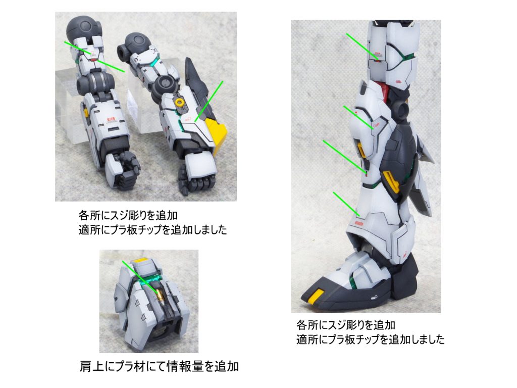 各所にスジボリにて情報量を追加して塗分け 太ももをパテにて幅…