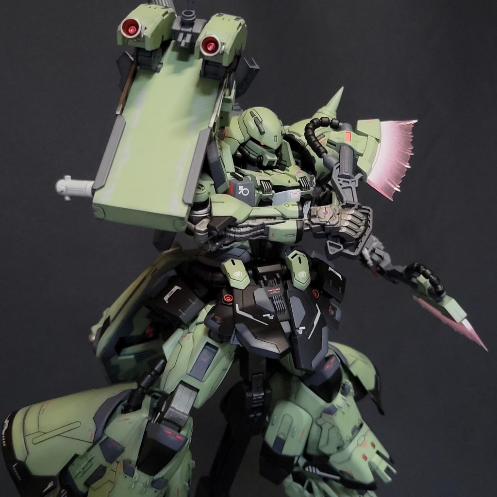 ストーリーから拝見させて頂いてましたが、ザクⅢ独特の下半身のどっしり感とそれに負けない上半身のバランスと情報量、圧巻の武装(デカイ武装は大好物です)、どの角度から見てもカッコいい。。