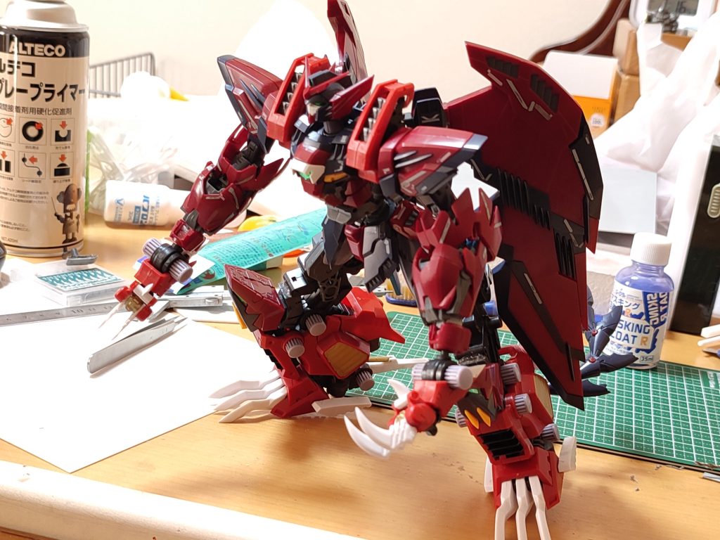 普段HMM ZOIDSを作成していて、もともとガンプラが好きなのでその2つを掛け合わして作成を作りたいなと思いできたのがこちらです。MGガンダムエピオンとHMMジェノブレイカーをかけ合わせて作成しました。