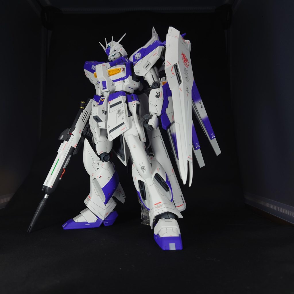 5年ほど前に作成したHi-νガンダムです。スジ彫り、赤チップなど初心者なりに頑張って作成した物です。特に、ビームライフルが、既存の形状が好みでなく、ユニコーンガンダムのライフル先端と、スコープを取付けて満足していたのが懐かしいです。塗装については、ほぼ無塗装で、つや消しトップコートのみでも十分満足する格好良さ(汗)