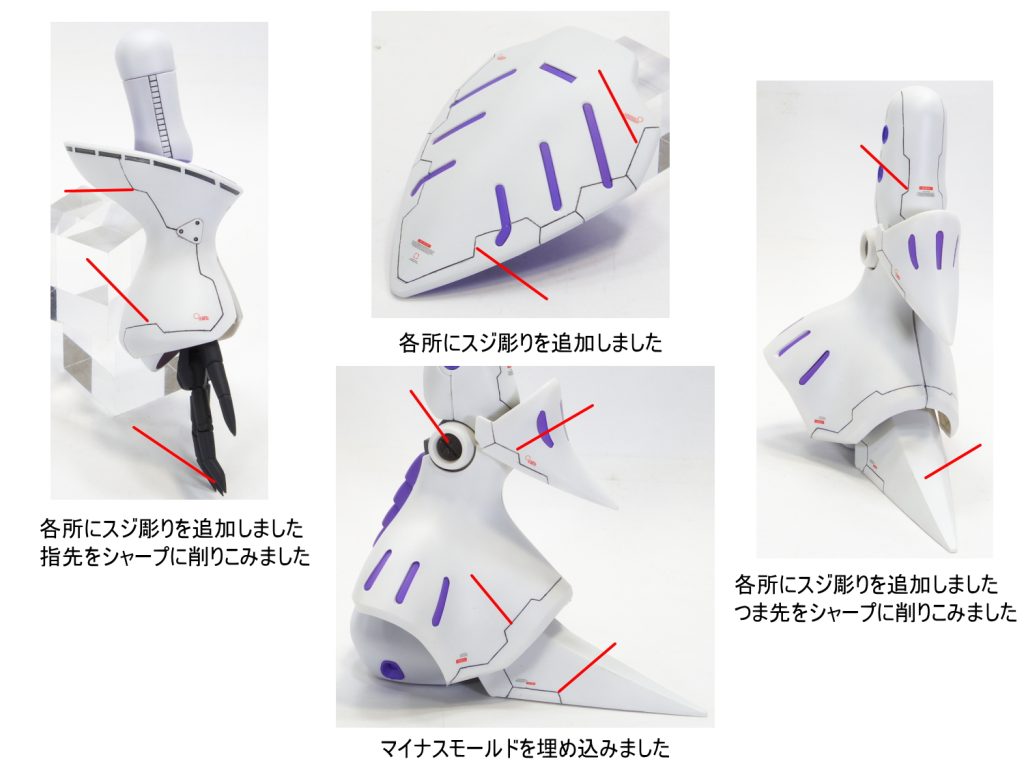 本体の各所のプロポーションを変更しました。 全体的にスジ彫り…