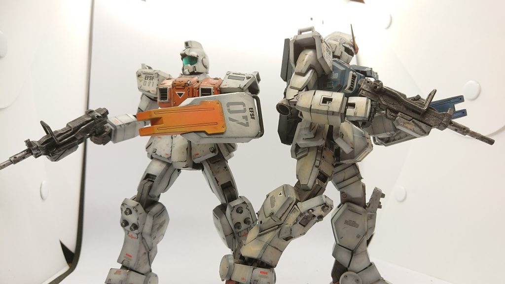 失礼します。『陸ジム達 08小隊』の面々は正に汚してナンボですよね🤗 『錆びから鉄』の汚しは自分大好きです(一番自然に感じます) 揃い踏みだと感激がマシマシに😆 最後のショットは『これぞ陸ジム』という雰囲気たっぷりです😍