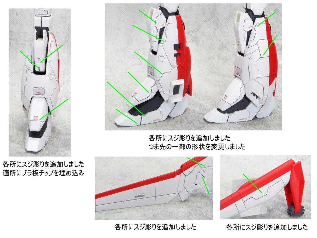 各所にスジボリにて情報量を追加して塗分け 太ももをパテにて幅…