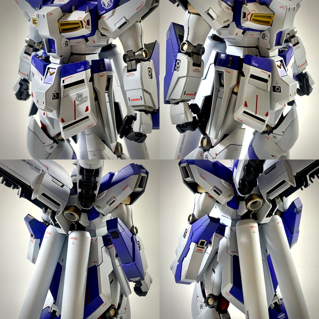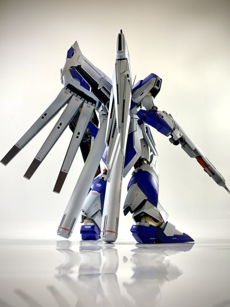 mg hi-νガンダム h.w.s. ver.kaを全塗装で製作しました。シンプルなカラーリングに見えますが、14色の塗料を使用し塗り分けました。