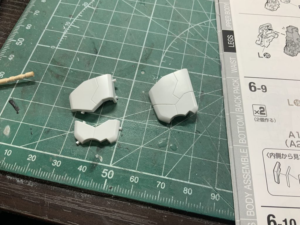 今回も7枚羽 プロペラトタンクが支えにはなりますが、腰間接の後ろに1mmプラ板に差し込んだらファンネル7枚でも自立します プロペラトタンクのリングはプラ板で制作しましたが、接着の際流し込みを入れるとパツパツ切れるのでちょっとだけ難儀しました😓