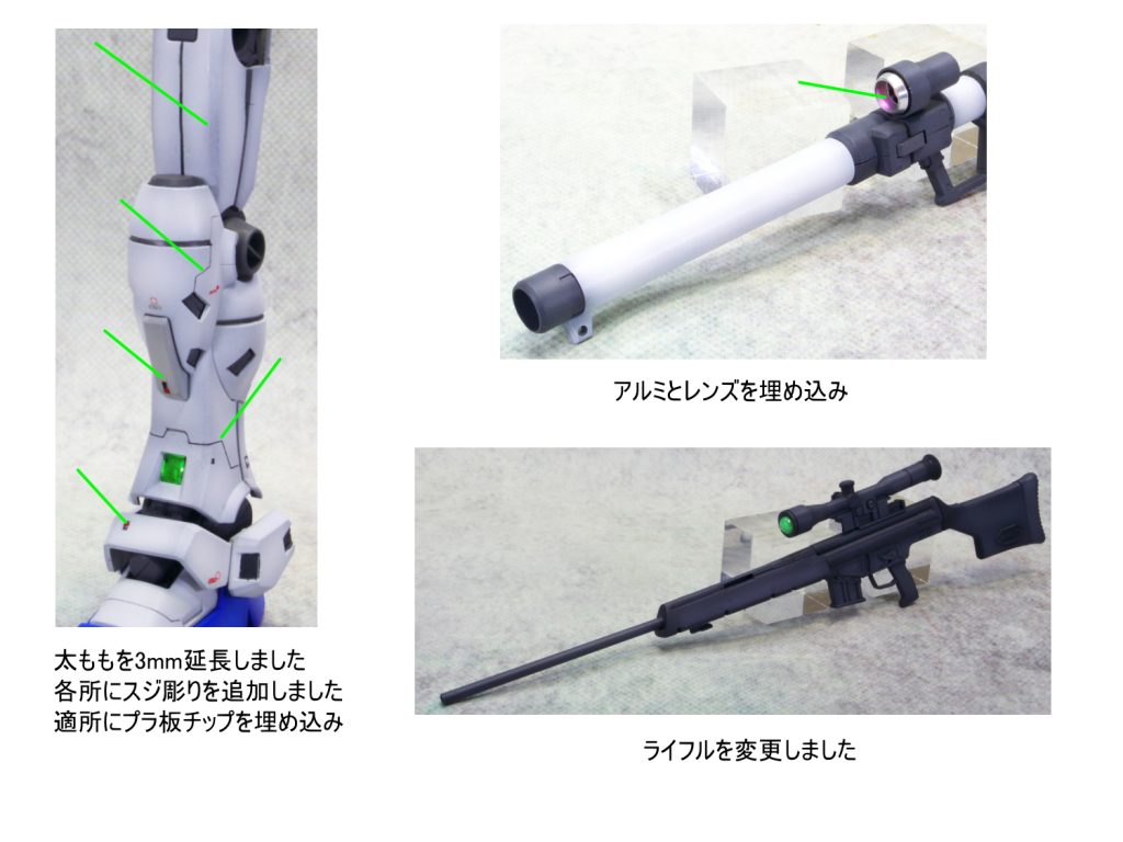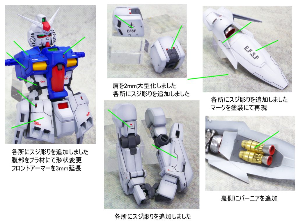 guplafact… MG 2023.07/01更新 MG ガンダム試作3号機 GP03S ステイメン 1104 126 いいねしたモデラー(126) 0 0 作品を共有 ライフルをスナイパーライフルに置き換えて製作しました。 本体の各部のプロポーションを変更しました。 肩を2mm大型化しました。 フロントアーマーを3mm延長しました。 太ももを3mm延長しました。 腹部をプラ板にて形状変更しました。 本体の適所にスジ彫りとプラ板チップ埋め込みを 行いグラデーション塗装にて仕上げました。 MG GP03 GP02 GP01 改造 スジ彫り プロポーション変更 グラデーション塗装 プロポーションを変更いたしました。 コメント コメントをして応援しよう コメントにはログインが必要です guplafactory 主にMGやRGやHGUCを製作しています。 自分なりに改造をしたりしています。 9 HG 高機動型ザクⅡ シーマ ガラハウ専用機 胸部、スカート周りを形状変更をしてスジボリを追加して 雰囲気… 8 HG 高機動型ザクⅡ ユーマライトニング機 色を変更してユーマライトニング機にしました。 スジボリの彫り… 9 HG 高機動型ザク ランバル機 スジボリ追加にて情報量を追加してカラーリングを 変更してラン… 9 HGUC グフ リバイブ 各所にスジボリにて情報量を追加して塗分け 太ももをパテにて幅… guplafact…さんのページ この作品をお薦め作品に設定する Please login to update your profile! Please login to update your profile! Please login to update your profile! Please login to update your profile!