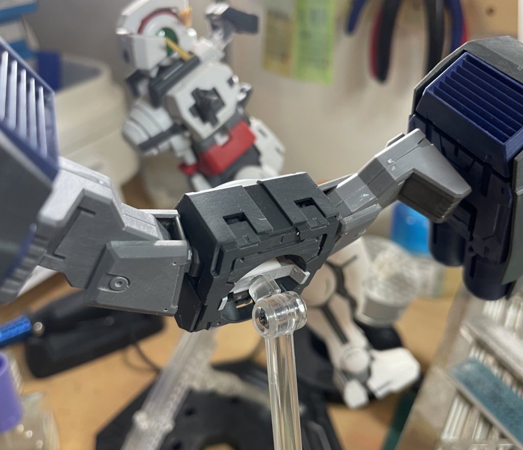 GNキャノン、バックパック、リアスカートアーマーはかなり重量があるため、アクションベースの軸に直接接続するようにしています。