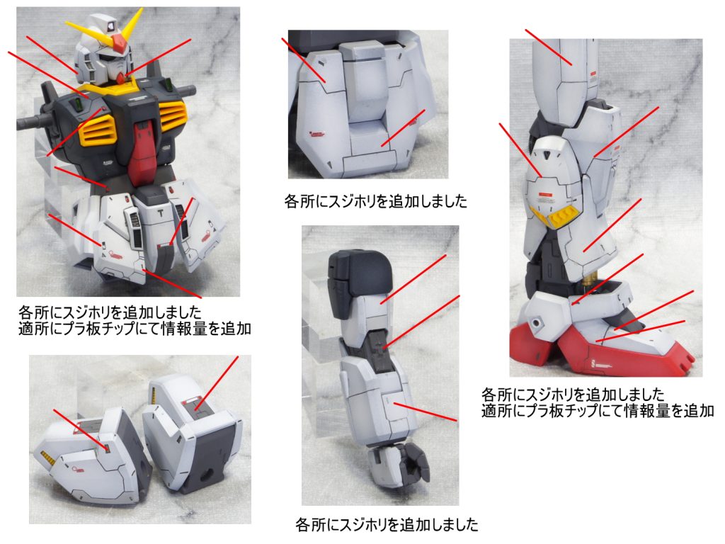 太ももをプラ板にて1mm幅増ししました。 各所にスジ彫りの追…