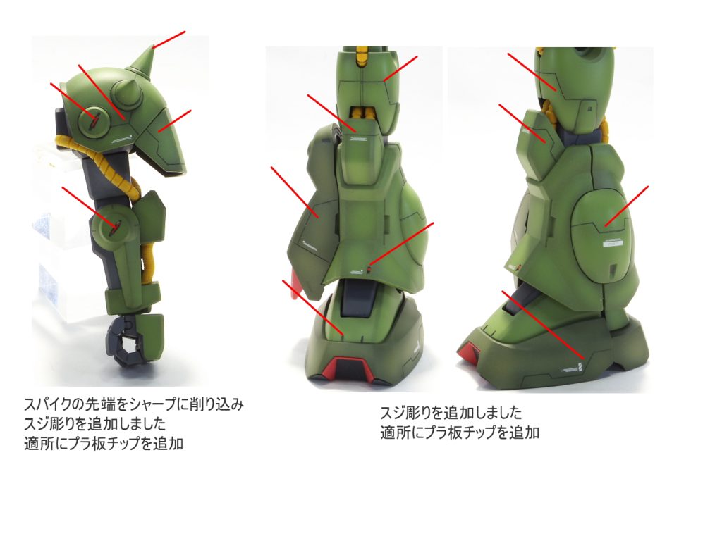 適所にスジ彫りの追加とプラ板チップを埋め込みました。 グラデ…