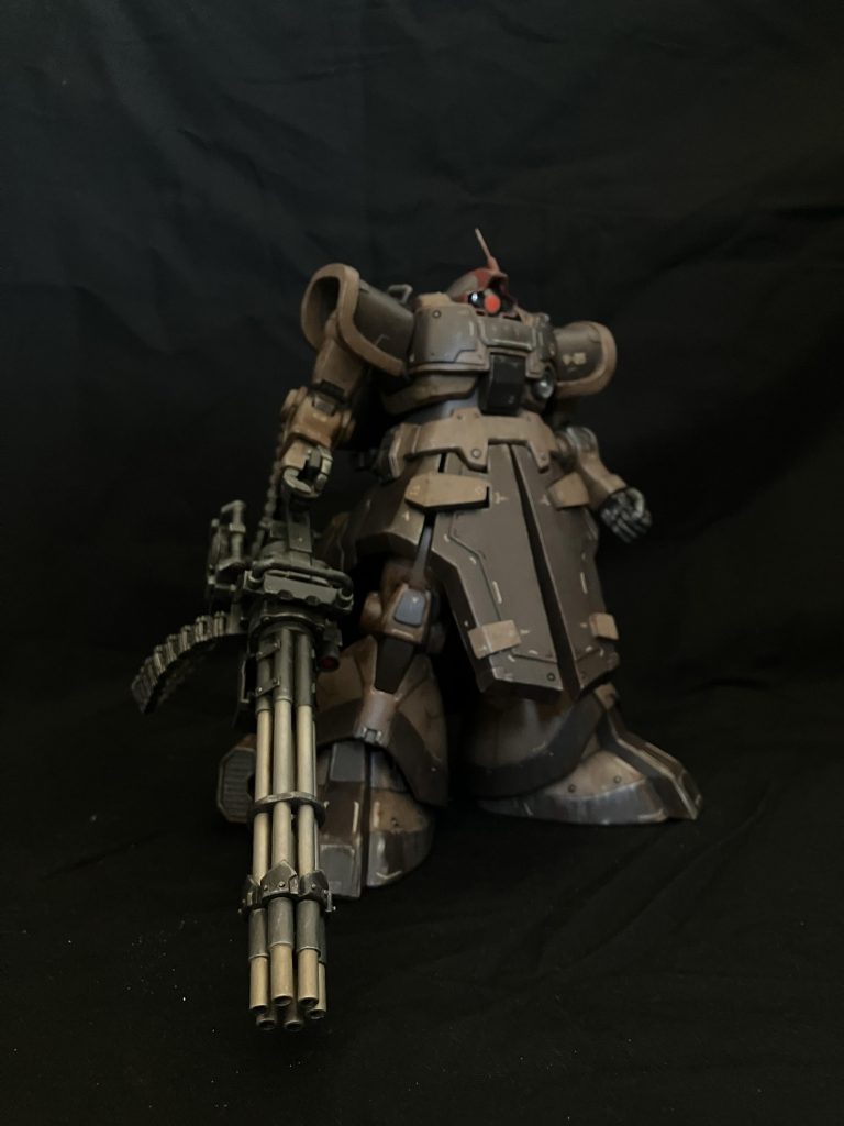 吉本プラモデル部模コンはレベル高いのかしら?制作過程からずっと漢を感じてましたが。丁寧なスクラッチと緻密なディテール、ガトリング砲1つに漢のロマンを背負い、負けない下半身の太さ。うちは好きですなぁ😆