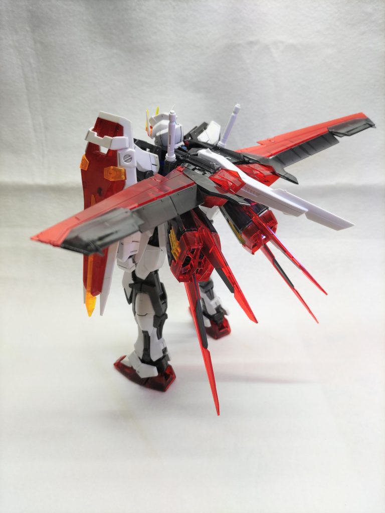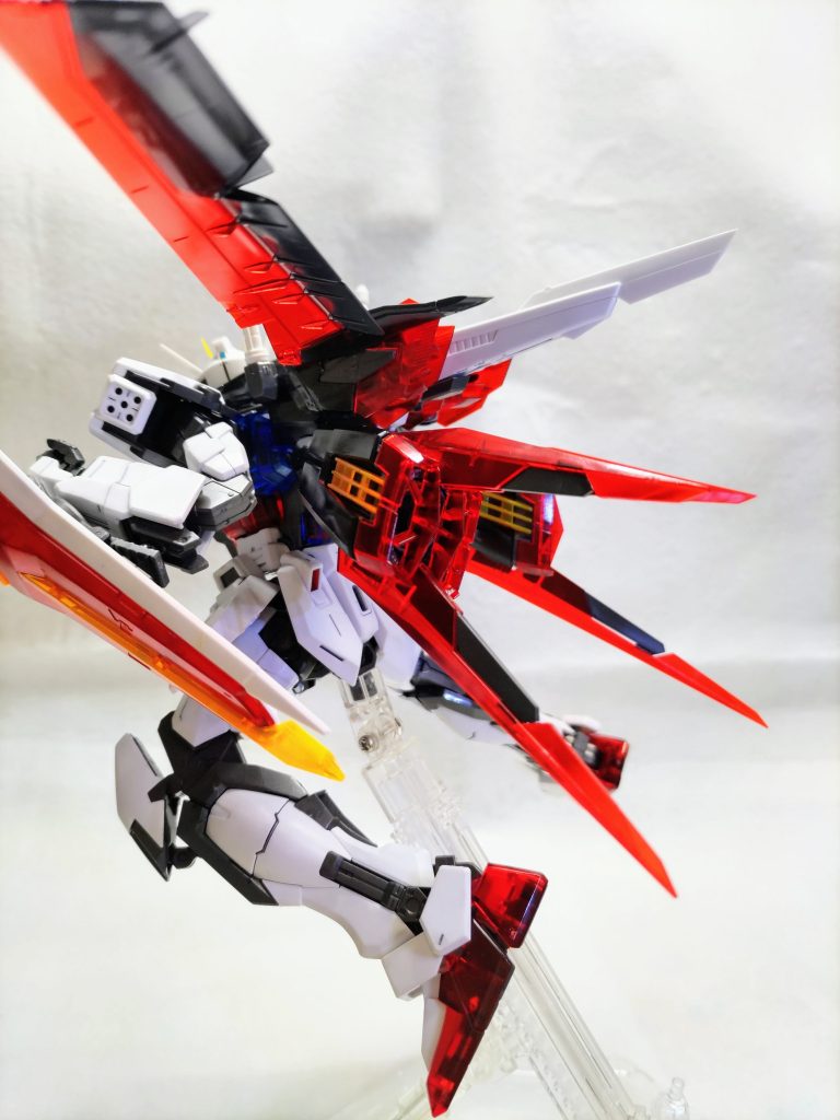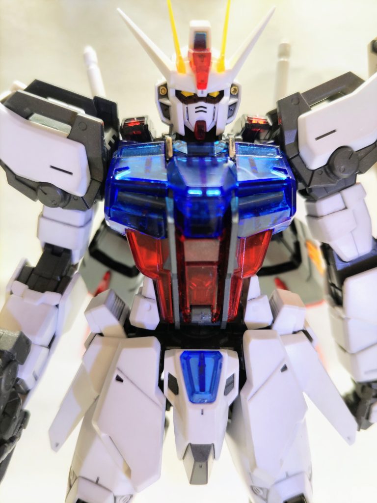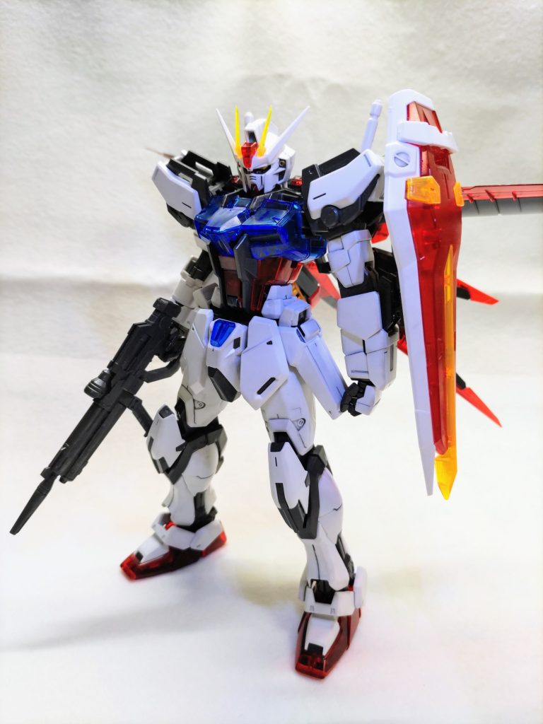 先日の一番くじB賞のMGエールストライク ソリッドクリアです。スミ入れと少し部分塗装をした程度。白パーツは初めて激落ちくんツヤ消しを試してみました。