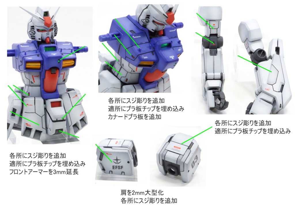 本体の各所のプロポーションを変更しました。 全体的にスジ彫り…