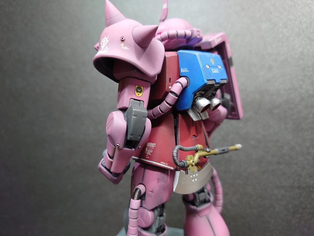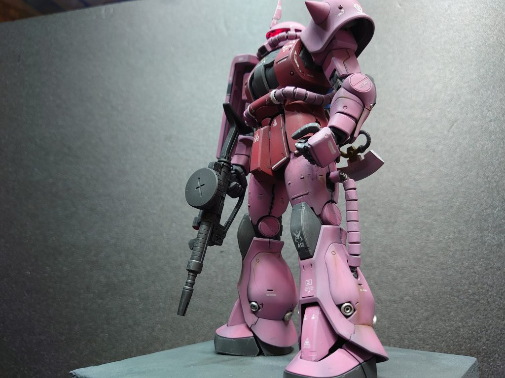 サーモン色ぽいのから深紅までシャアの赤は色々ありますが、ま、こういうピンクも意外にかっこいいてすねー、モノアイは電飾すると迫力でますよねー