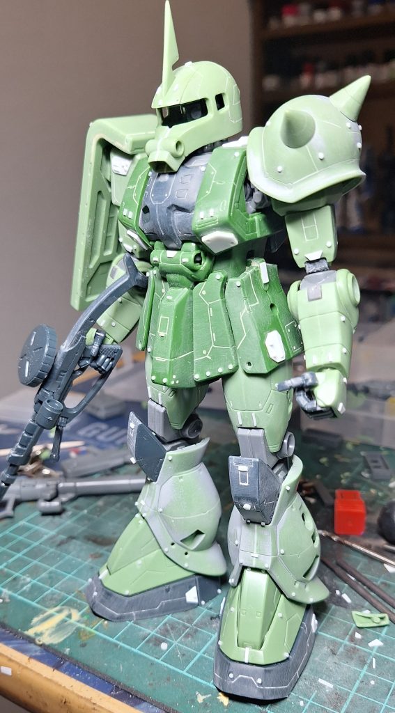 MGグフVer1.0をスジボリとプラ板でディテールアップして…