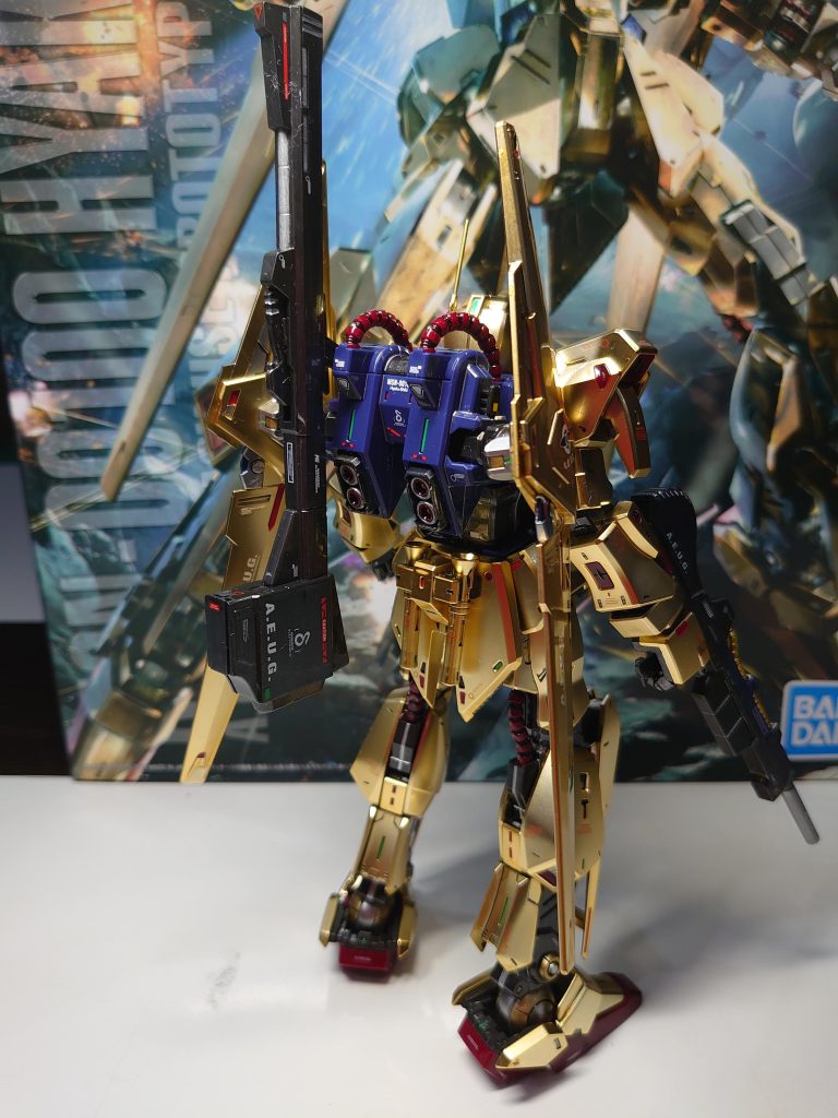 syouichiさん閲覧コメントありがとうございます。ゴールド部はメッキ生かし、クリア重ね塗り、磨き、ワックス仕上げです。紛らわしい投稿をしてしまいすいません🙏フレーム、武器等は筆塗りです。