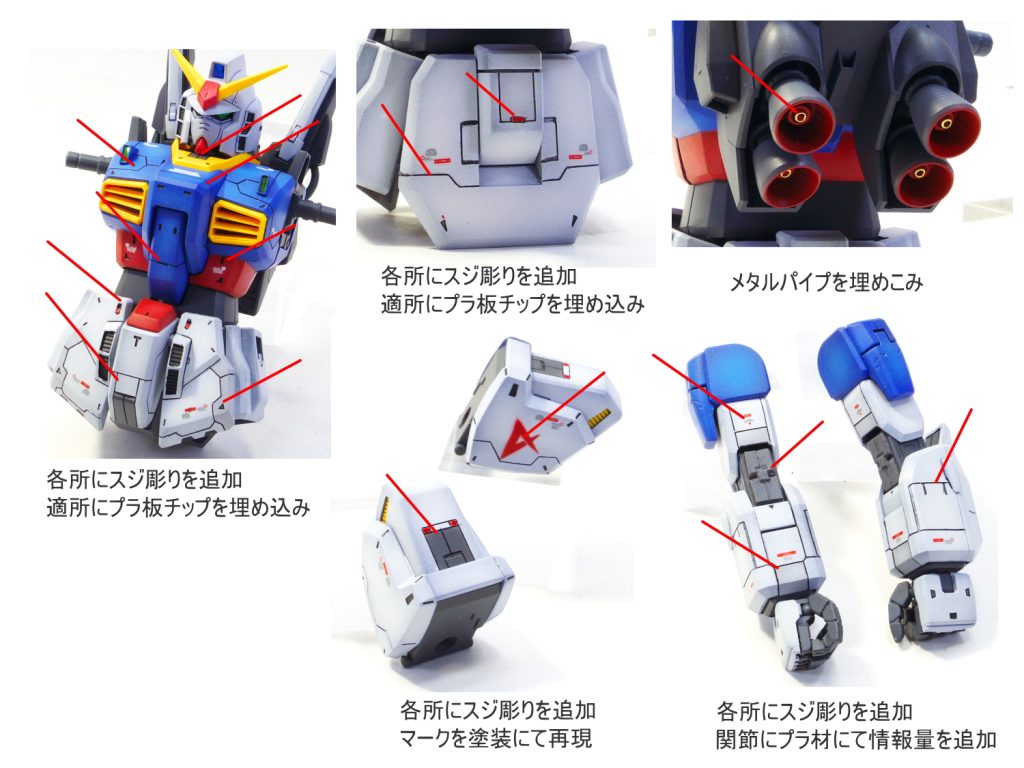 本体の各所のプロポーションを変更しました。 全体的にスジ彫り…