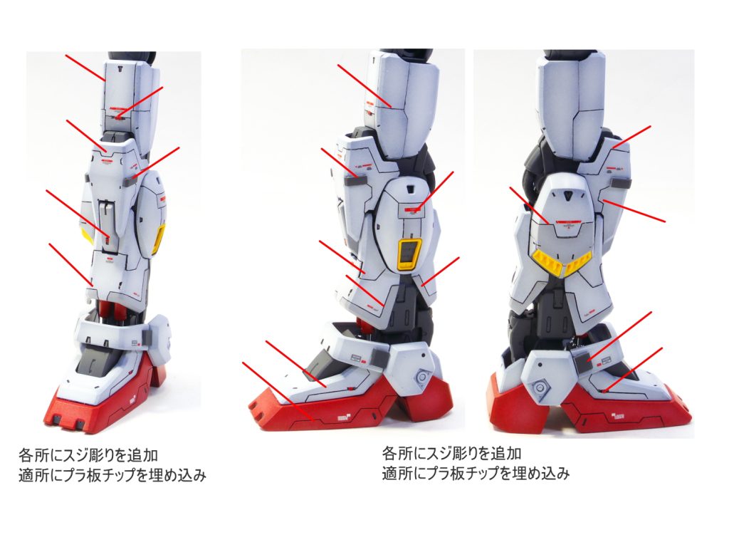 太ももをプラ板にて1mm幅増ししました。 各所にスジ彫りの追…