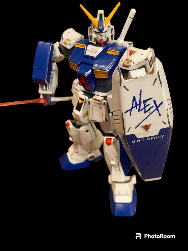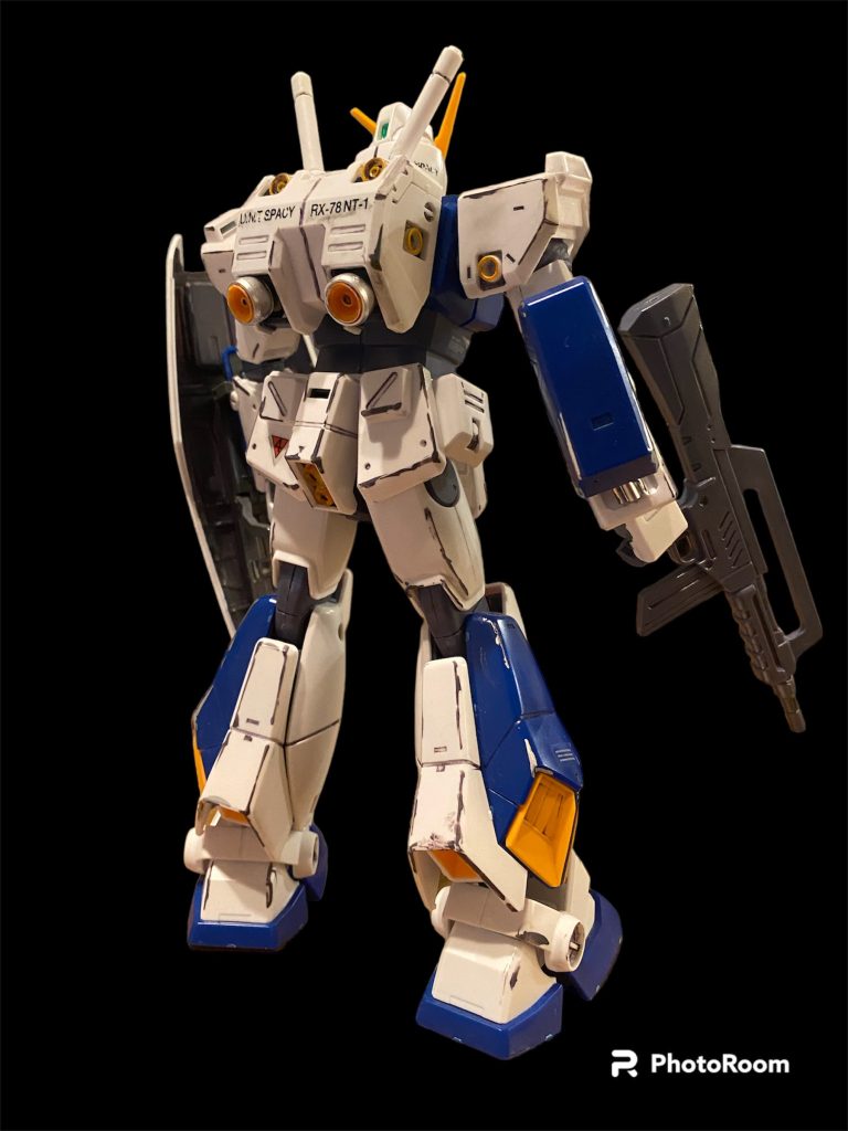 昨年作ったMGのガンダムNT1です。ここんところ寒くなってきたので?本体完成後ずっと放置してたチョバムアーマーを用意して装着しました。