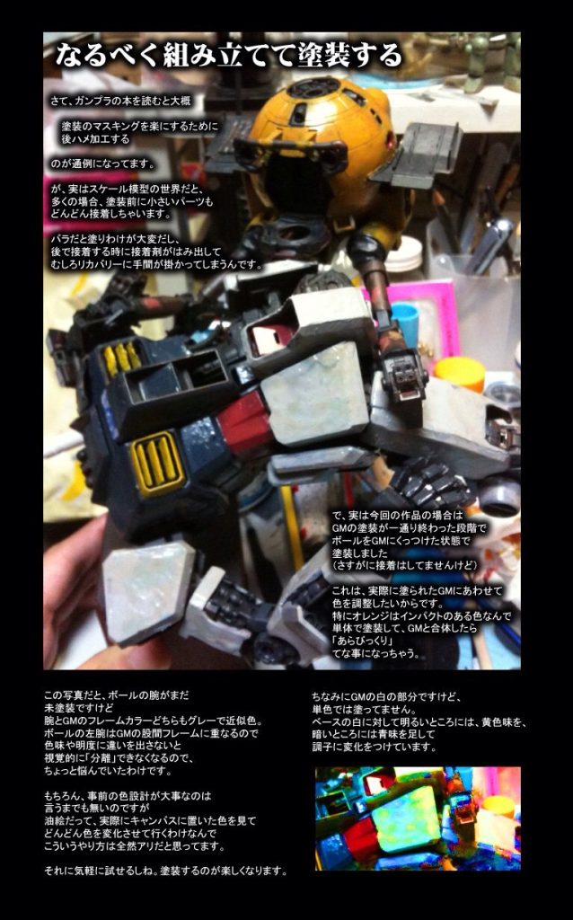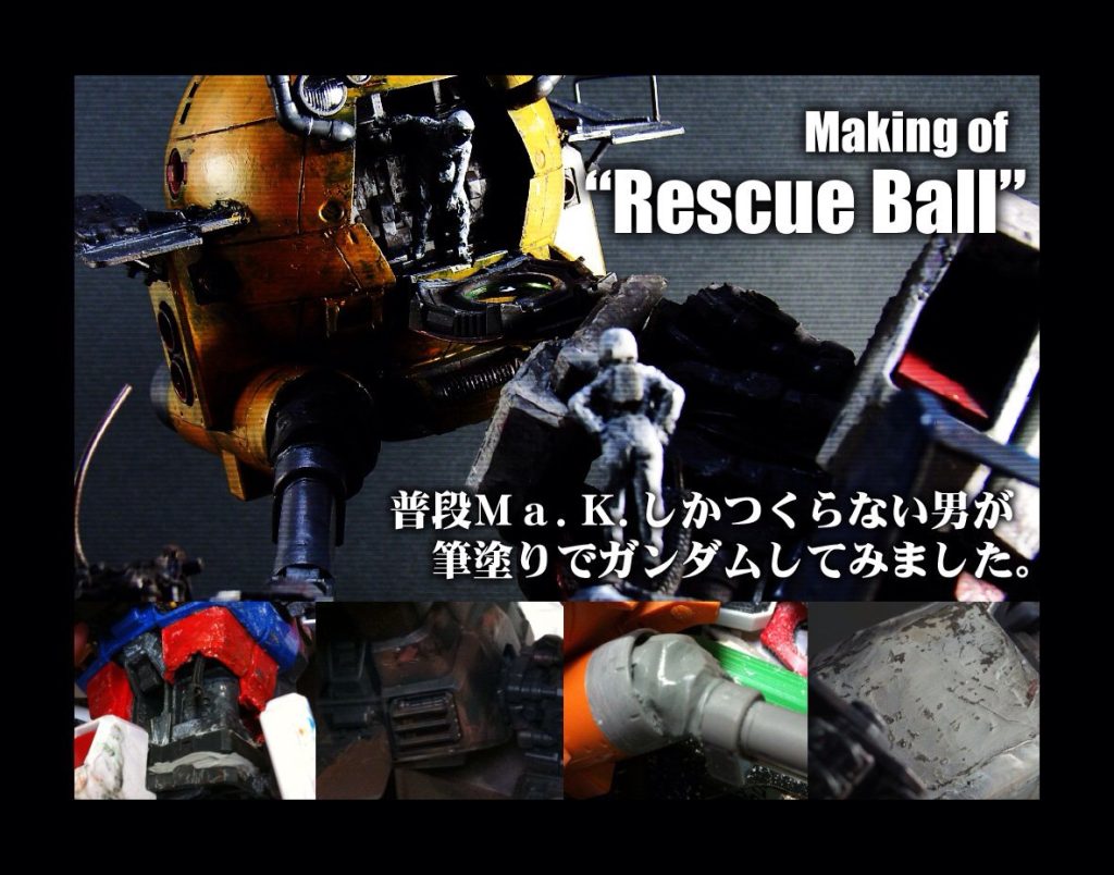 全体像です。実はアニメ設定のボールは妙にデカいです。本来のイメージは2001年宇宙の旅のスペースポッドなわけなので、そのサイズに近い方向にする必要があります。そのために使った手法がMGでは無く1/60ガンダムと合わせる方法です。皆さんのイメージに合ったサイズ感じゃないでしょうか。
