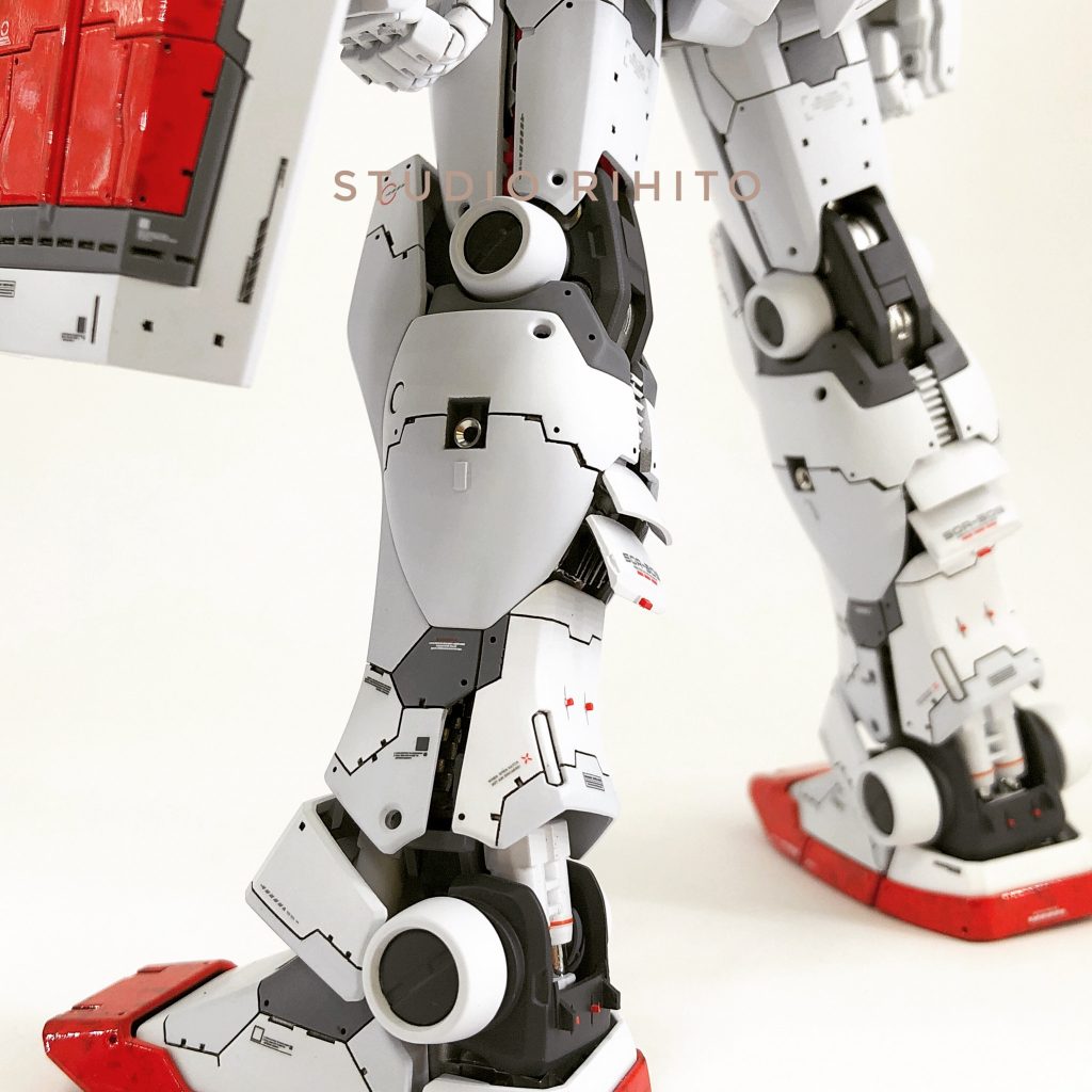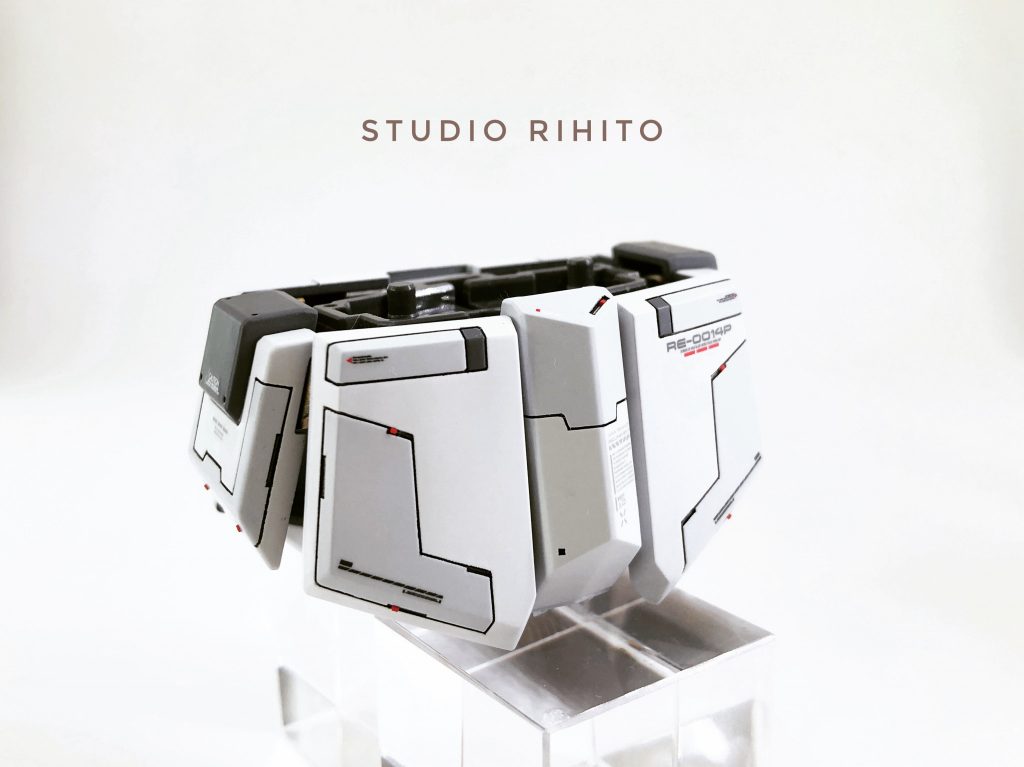 このキットはふくらはぎの外装に残念な合わせ目が生じるので、綺麗に接着・合わせ目消しを行い、2段ハッチオープンの工作を行いました。内部にはヒンジ、ヒートシンクディテールをインストールしています。