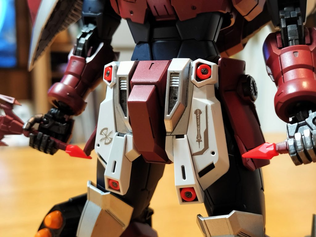 足首の延長と開いた隙間を余剰パーツ(スラスター)で埋めています。