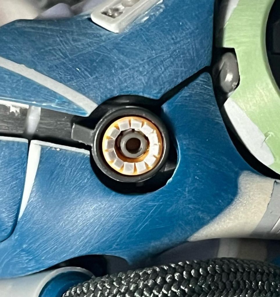 ここがポリキャップ丸見えだと急に現実に引き戻される気分になるのでしっかり作り込みました。バーニアは数が多くて嫌になりながらも中身を1mm四方のプラ板を大量に貼り付けてディテールアップしてます。