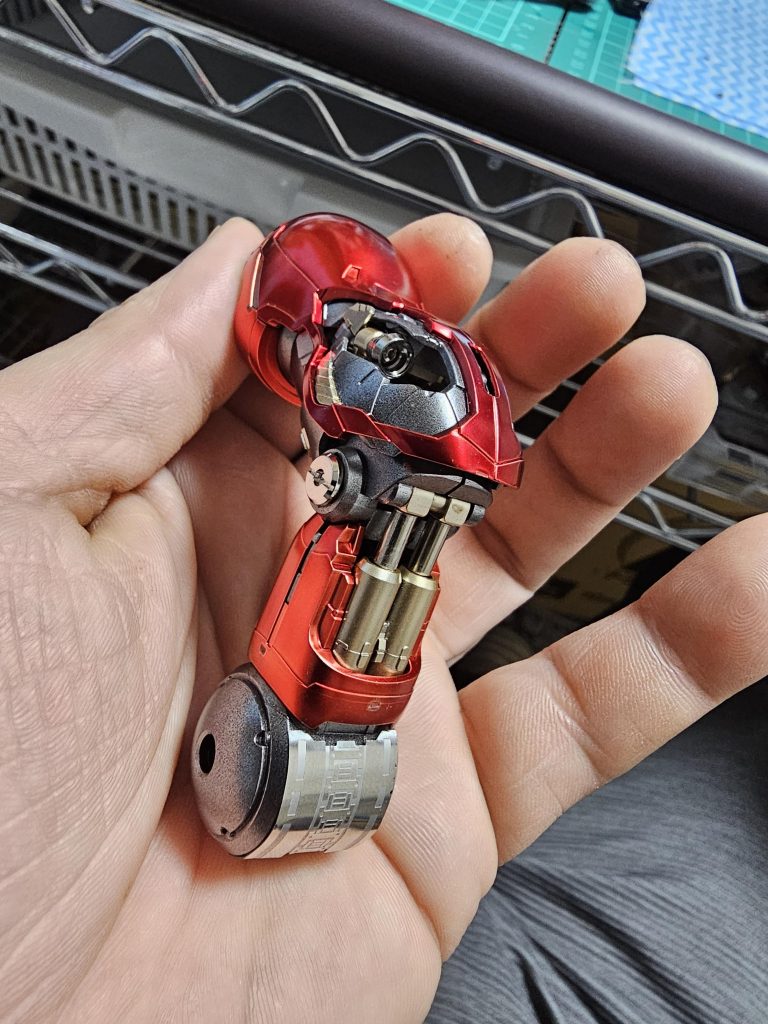仕事終わりに、毎日ちょこちょこやりました、内部は、全塗装、メタルパーツ、メタルバーニアなどを初めて使用したんで、悪戦苦闘しながら、三ヶ月近くかかって完成です、疲れましたがめちゃくちゃ楽しかったし、思い入れのある機体になったと、思います❗対戦ありがとうございました
