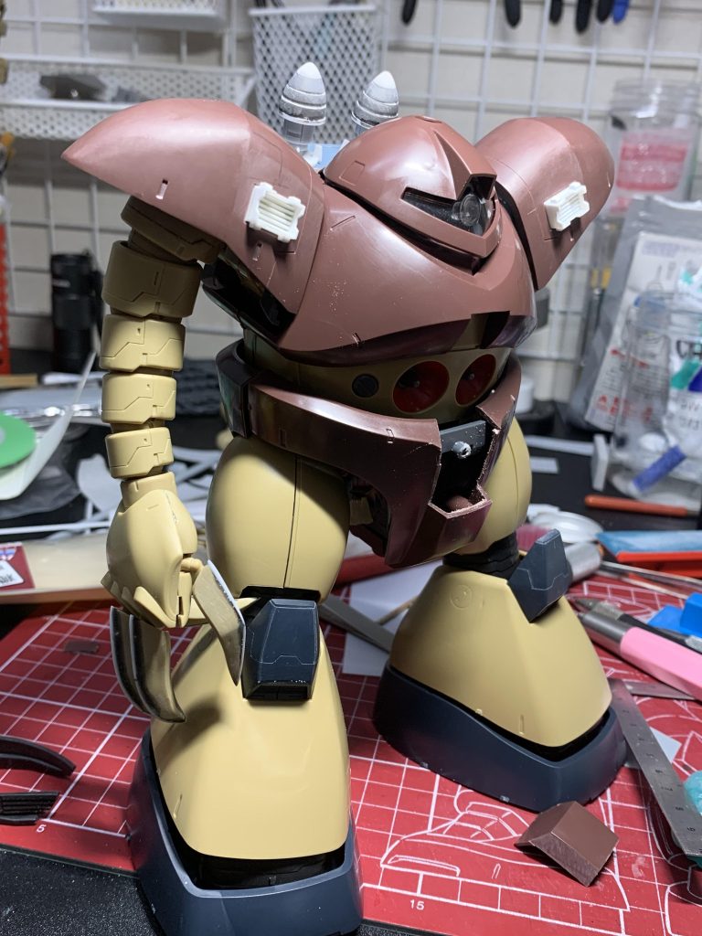 いつもはディテールでゴテゴテさせていくスタイルなんですが、今回のゴッグはディテール少し控えめで製作したお陰で、結果的にスジボリなどが際立って良かったかな〜と思ってます^ ^