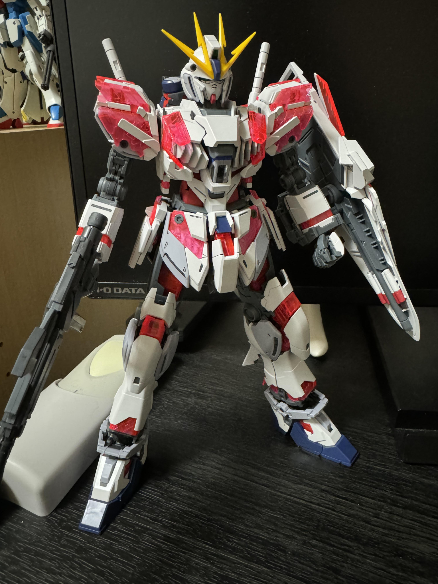 ナラティブはサイコフレームの着脱ギミックがある関係からパーツも細かくMGの中で一番苦労したキットでした