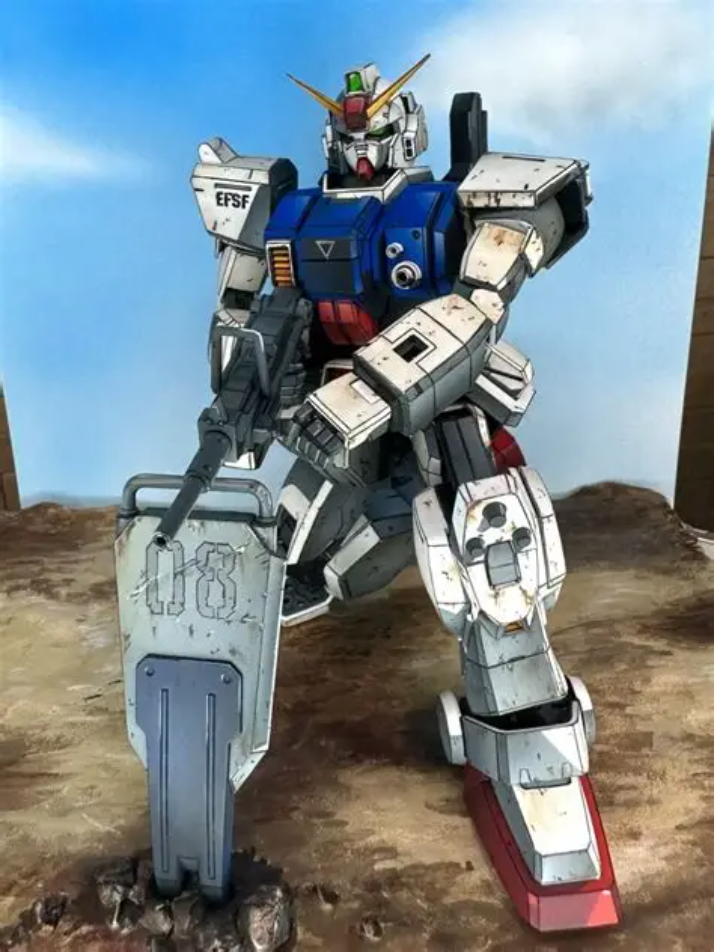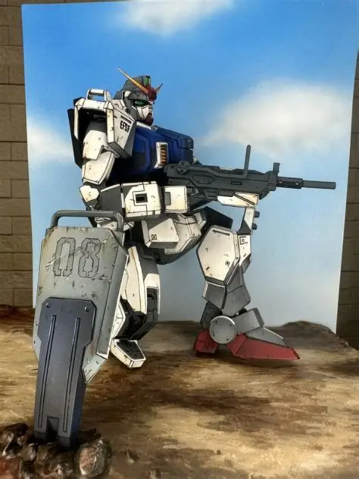 今作もまたまた素晴らしい作品ですね〜✨完全にアニメのセル画のように見えますが…立体のプラモデルなんですよね?地面や背景のクオリティも高くて陸ガンと同化して1枚のイラストにしか見えません😄凄い!の一言です!😆