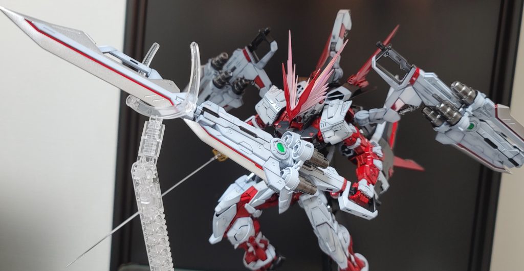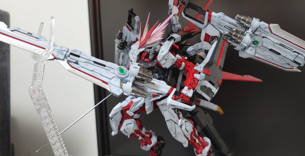 ツノのビームはガンダムマーカーのトランザムホロレッドを吹いてみました。偏光がいい感じです。
