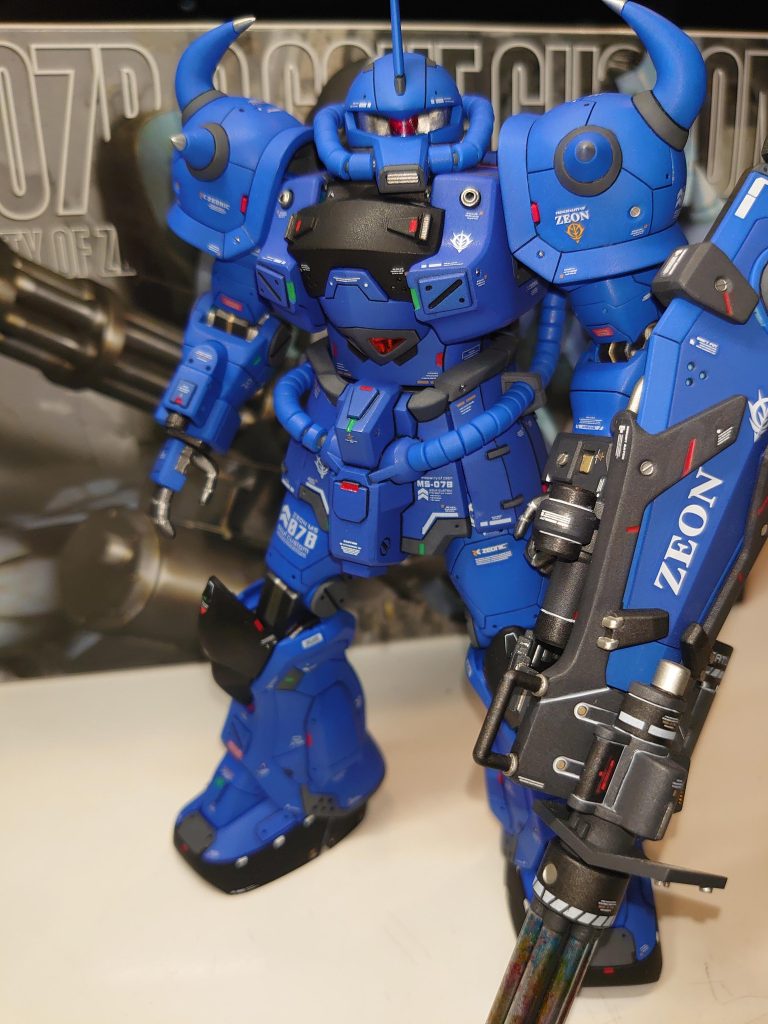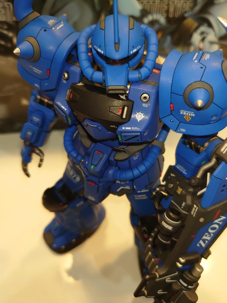 グフ寄りの鮮やかな青い塗装が目を引きました。綺麗な発色ですね。眼福。