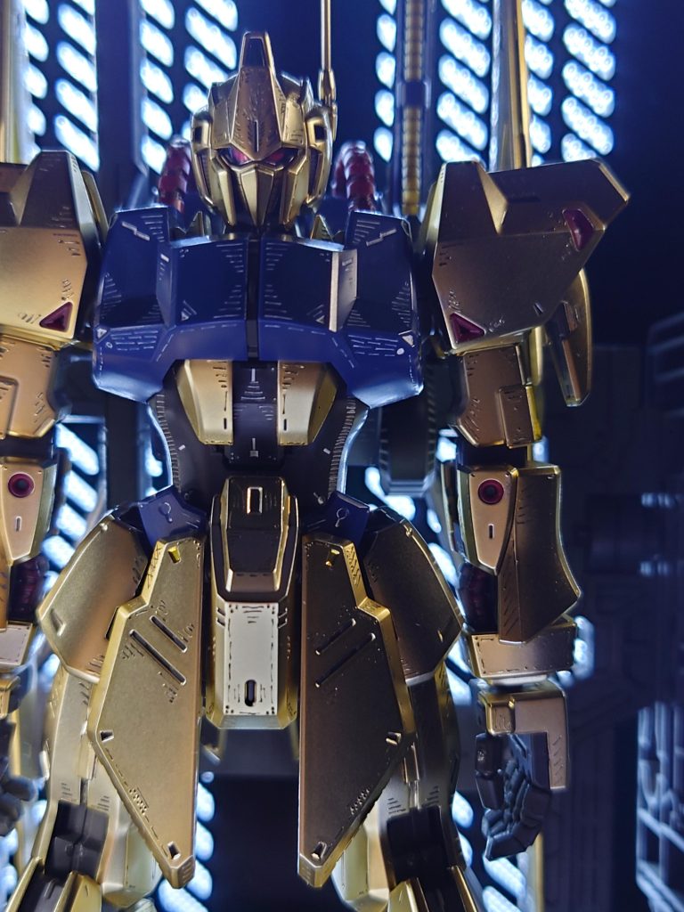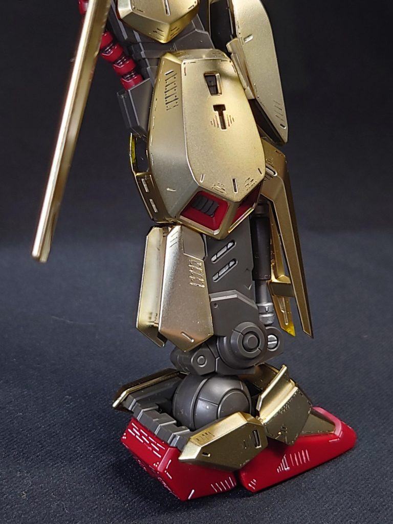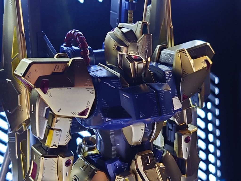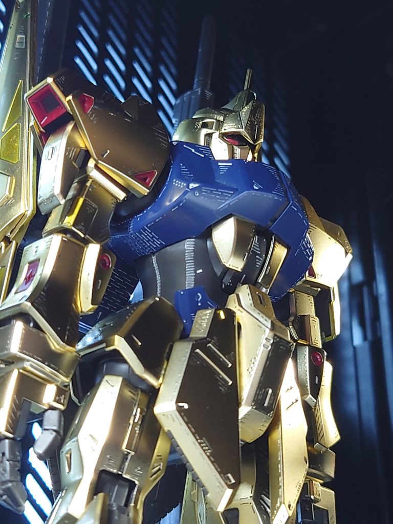 イメージとしてはナイト・オブ・ゴールドっぽさをイメージしてのスジ彫りなのかなと!初めて見た時に思いました!アテが外れていたらすいません!(笑)全体的に凄く良い感じで百式の可能性を広げた作品だと思いました!これから参考にされる方が出来るだろうなぁと、思います!(笑)