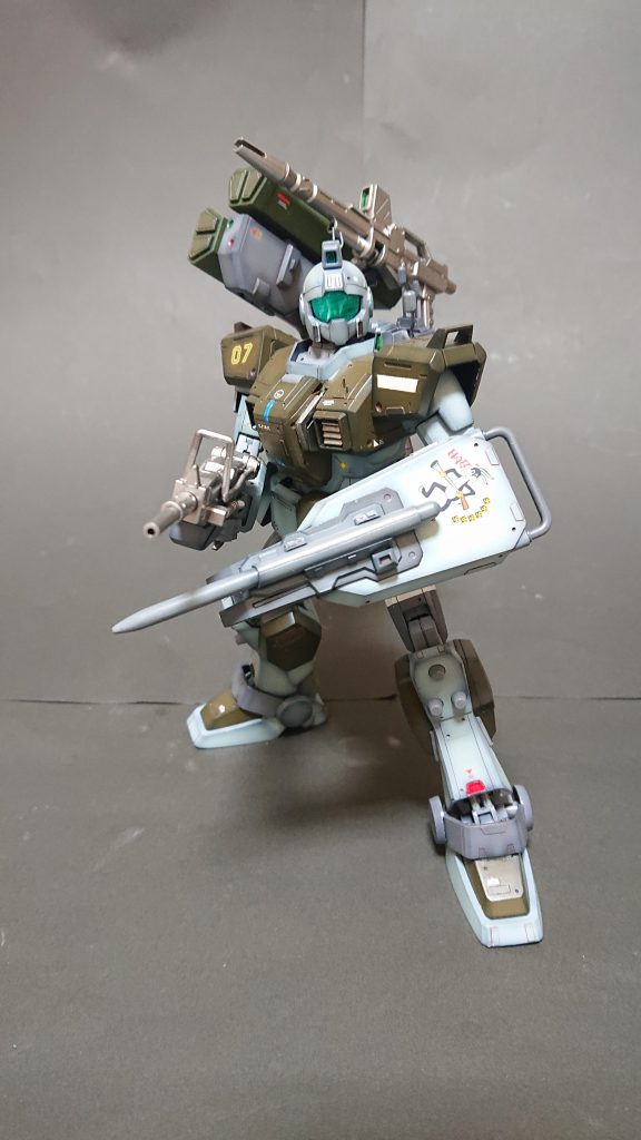このジムは塗り分け終わった段階ではこれ、大丈夫かなぁ?って感じでしたが、デカール、スミ入れ終えた辺りで何となくまとまってホッとした記憶がw