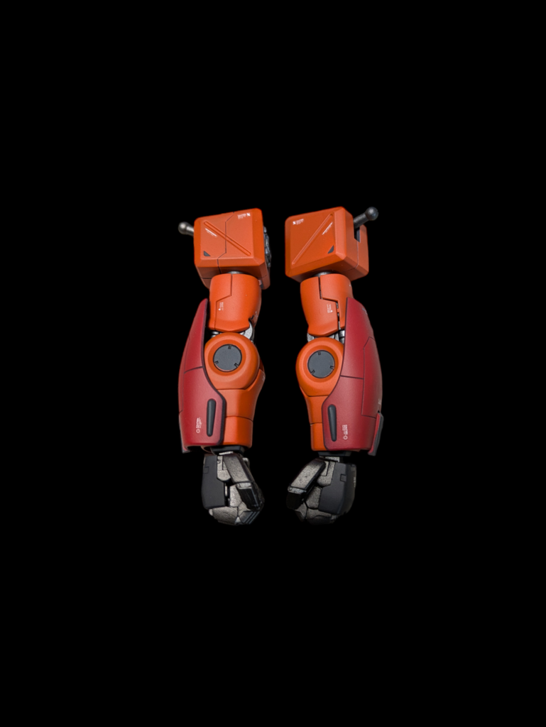 脚部の合わせ目位置を真ん中に変更。動力パイプはシリンダー状のものをスクラッチしています。少し設定とは違いますが一部のパーツはマスキングして塗り分けし別パーツに見える様にしています。バックバックの一部はホワイトに塗装しワンポイントカラーとしています。