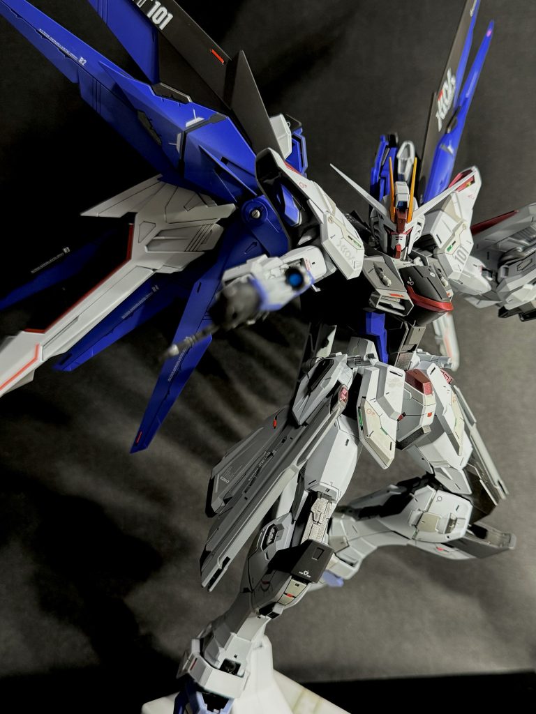 正面図。フリーダムガンダムは脚が小さいので、アンクルガードを大きくして脚を大きく見せる努力をしました。純正のアンクルより少し大きくなっていると思います。