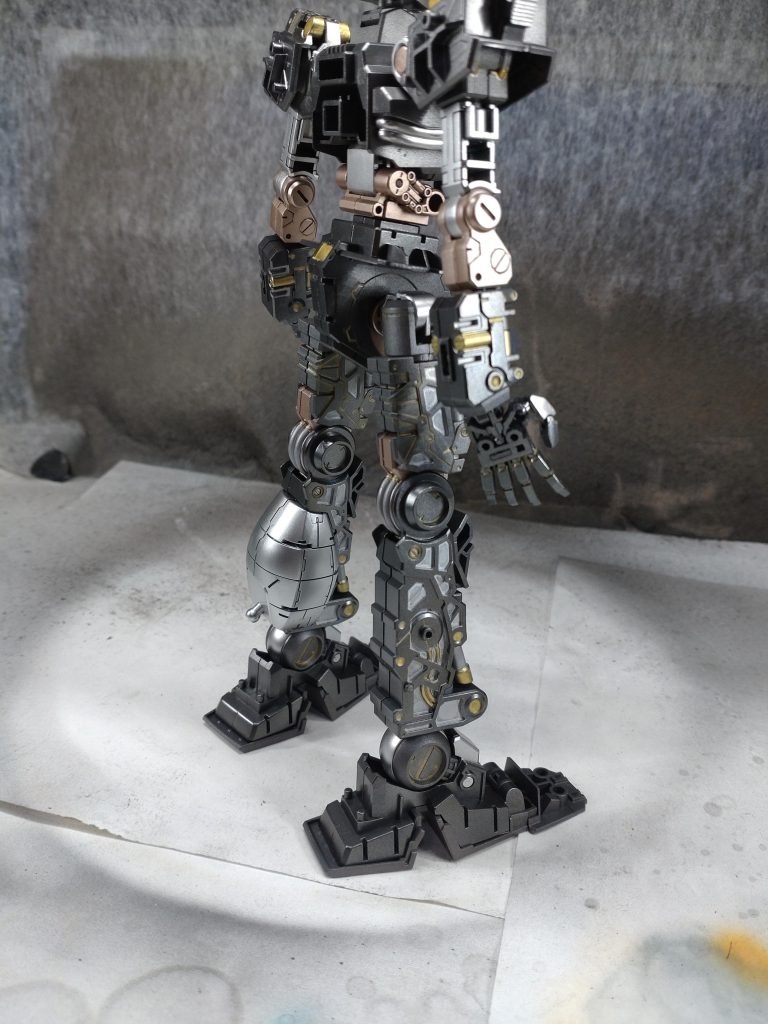 外装を着けるとほとんど見えなくなるのに内部フレームを塗り分けてみました、下半身は最初ガリガリだと思ったらふくらはぎのパーツを着けたらだいぶボリュームが増しました!