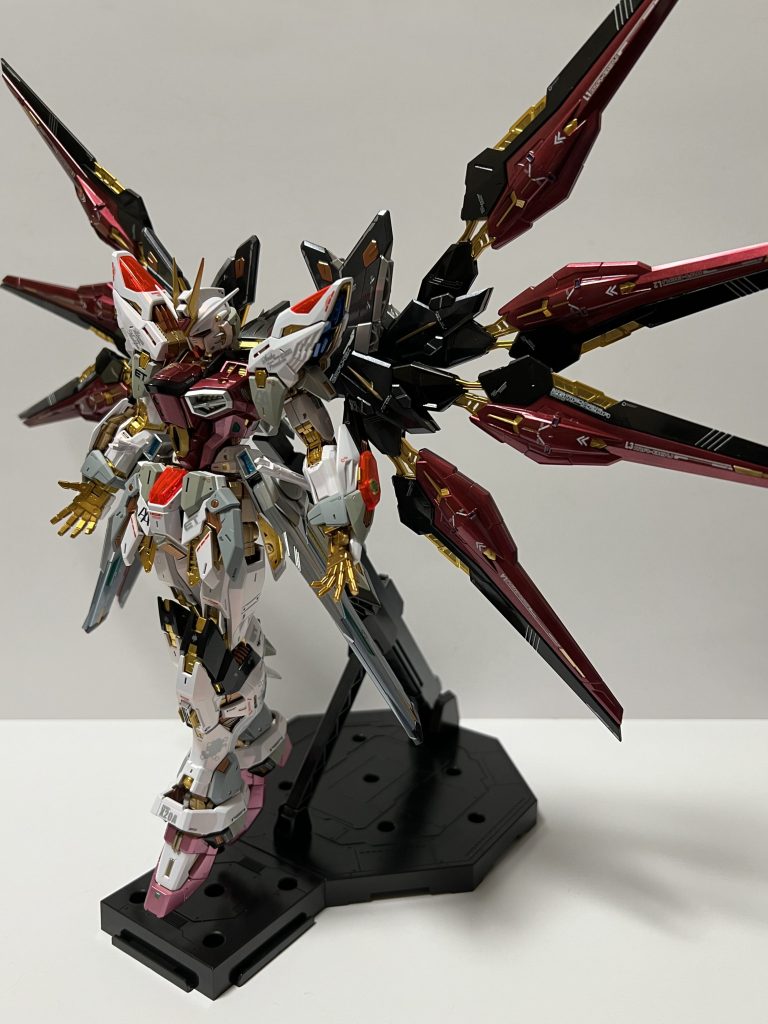 ただし、メッキゴールドのパーツは、そのままで充分綺麗でしたので、ゲート跡が目立つ部分のみリタッチ塗装で仕上げております。