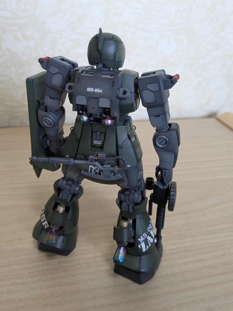 「ジオン軍がMSを運用しだした頃、敵機といえば連邦軍の艦船及び戦闘機を含む航宙機でしたがミノフスキー粒子の恩恵でミサイル等の誘導兵器は役に立たずMSが優位と思われた。だが、対戦闘機戦ではそのスピード(加速力)と機動性に太刀打ちできず急遽MS(ザクⅠ)の機動性(推力)の底上げが計画された」と、云う設定で制作しました。