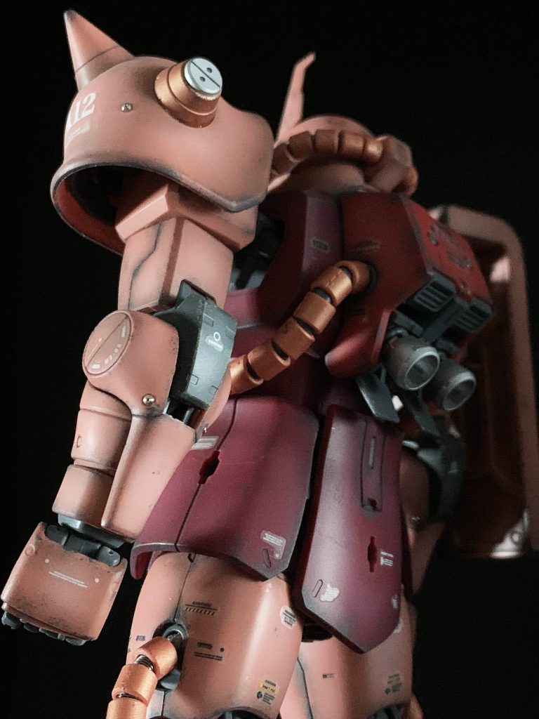 パーツのエッジに薄めた黒、ハイライト部分に薄めた白を吹き、グ…