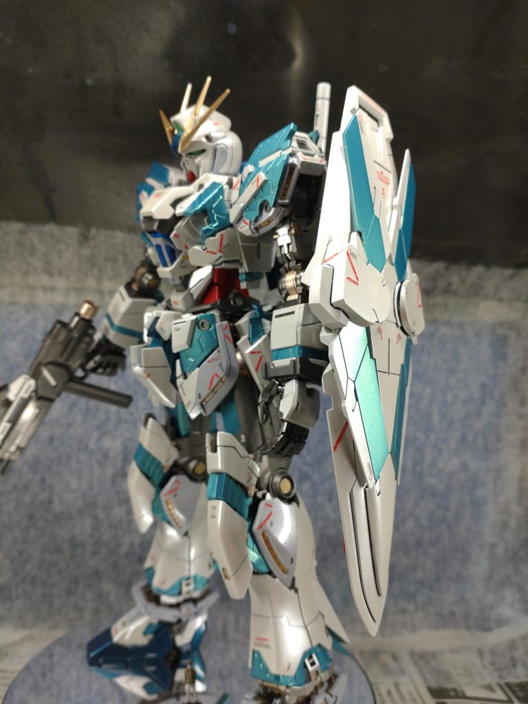 MGナラティブガンダムverKA、なんとか年内に完成させることができました!今回はメタリック感がテーマでパール、キャンディー、メタリック塗装をしています!