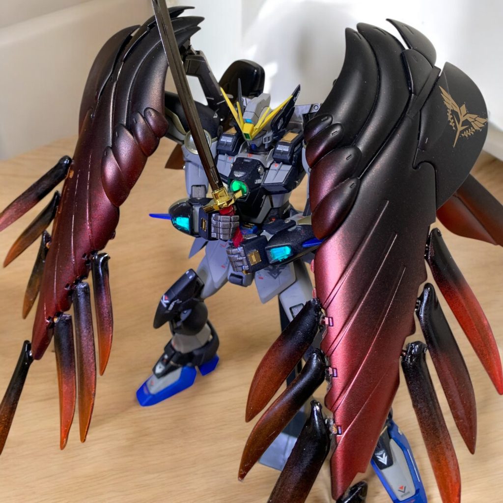 MGウィングガンダム、黒翼ver.かっこいいですね😆 黒とメタリックレッドのグラデーションがめちゃ綺麗🤩