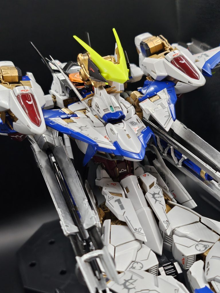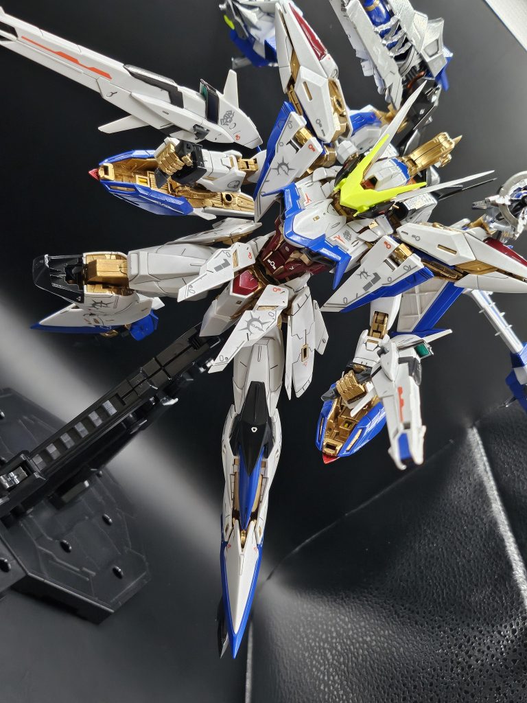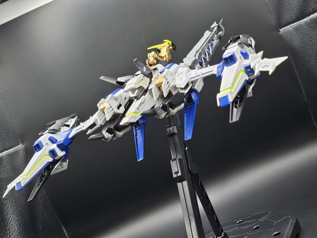 フリーダムをもとに設計されたモビルスーツということで、カラーリングは若干フリーダムに寄せつつ関節はゴールドに塗装し高級感を出しました!