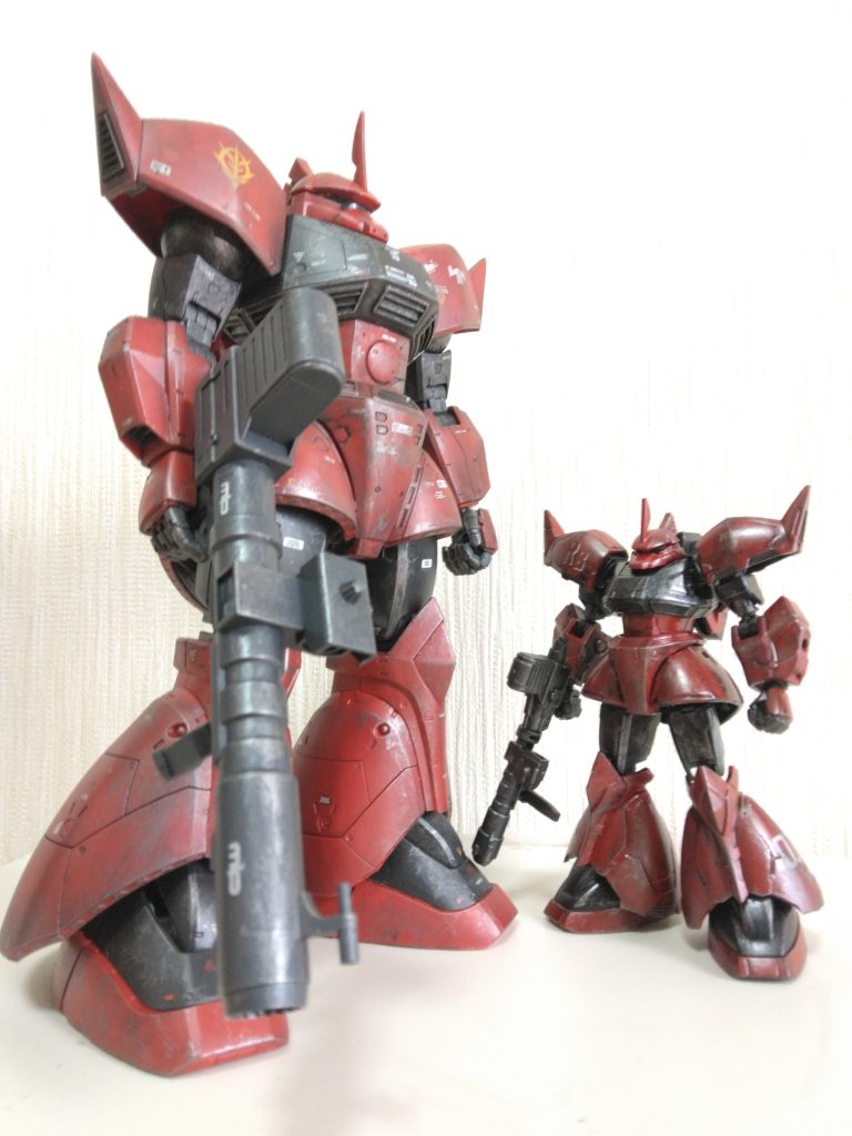 ちょうど、その頃Gフレームの量産型ゲルググが発売されたので、買ってすぐに塗装しました。こっちはよく動きます(笑)