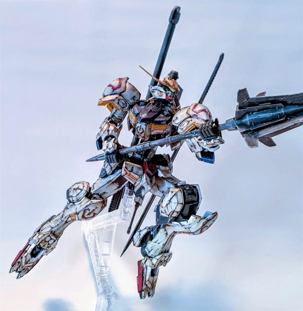 このバルバトスの迫力、存在感、凄いの一言に尽きます。kuro@A91さんの鉄オル愛がビシビシと伝わってきます😄こういう熱い気持ちのこもった作品、大好きです🥰