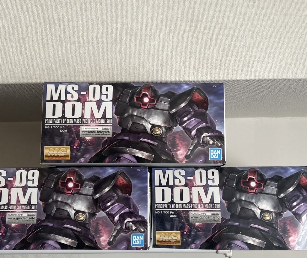 はじめまして 壮観ですね MGドム3機揃い踏みはガンダムモデラーの夢ですね おめでとうございます ありがとうございます