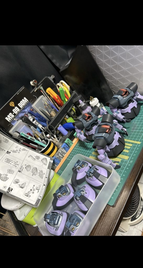 そうなんです、まさに昔雑誌に載っていた三機のドムを100分の1サイズで!って夢でした^_^